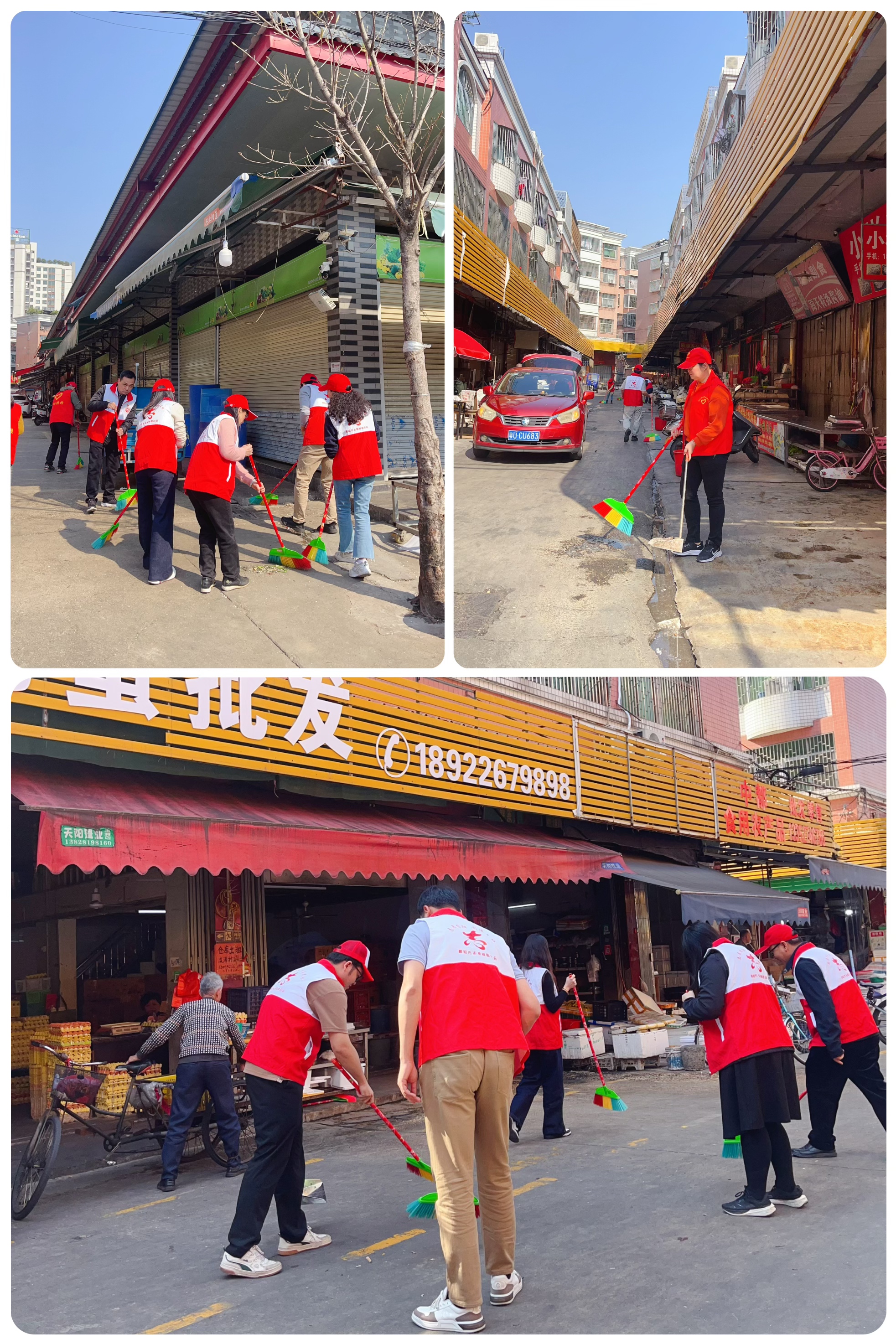 活動(dòng)現(xiàn)場(chǎng),志愿者分成5個(gè)小組,在市場(chǎng)管理人員的有序安排下,有的拿掃把、有的拿簸箕,擼起袖子,熱火朝天地開(kāi)啟了環(huán)境衛(wèi)生大清掃行動(dòng)。衛(wèi)生死角、墻壁上各類小廣告、地面積水垃圾等都被一一清理干凈,市場(chǎng)環(huán)境面貌在志愿者們的努力下煥然一新。