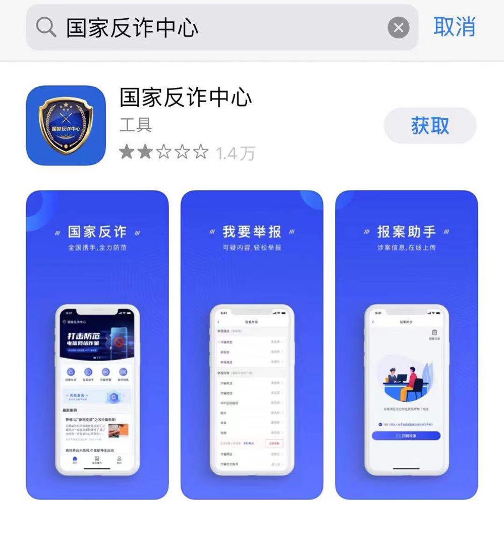 1、在各大官方應(yīng)用商店搜索“國(guó)家反詐中心”并下載